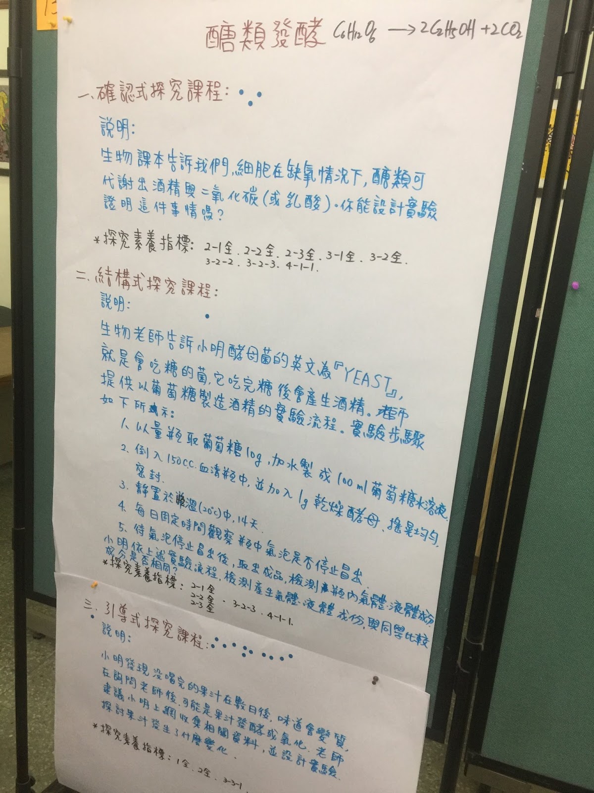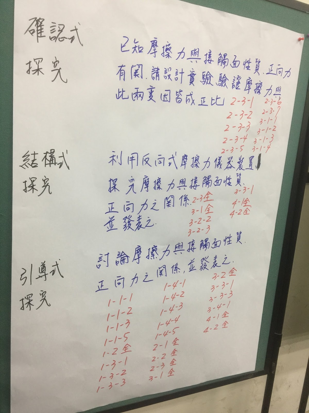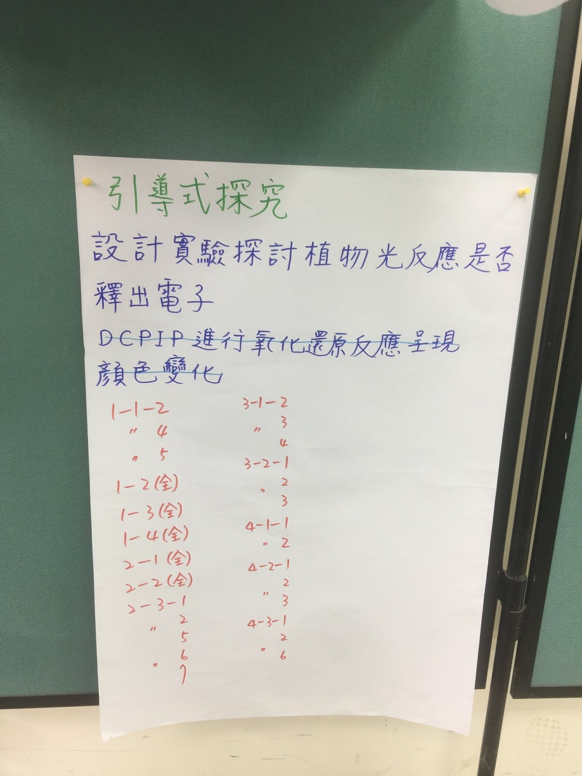 (3)引導式:給問題,研究流程步驟、答案皆未知,由學生自行設計實驗步驟,找出答案