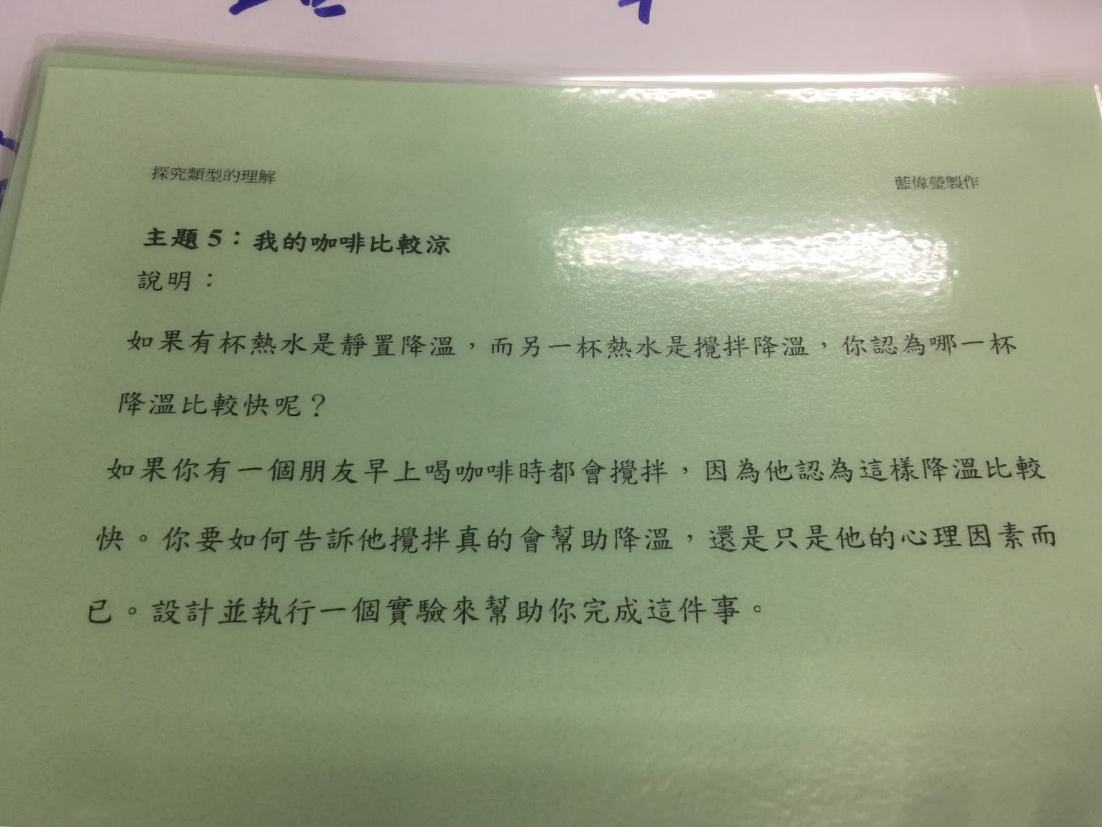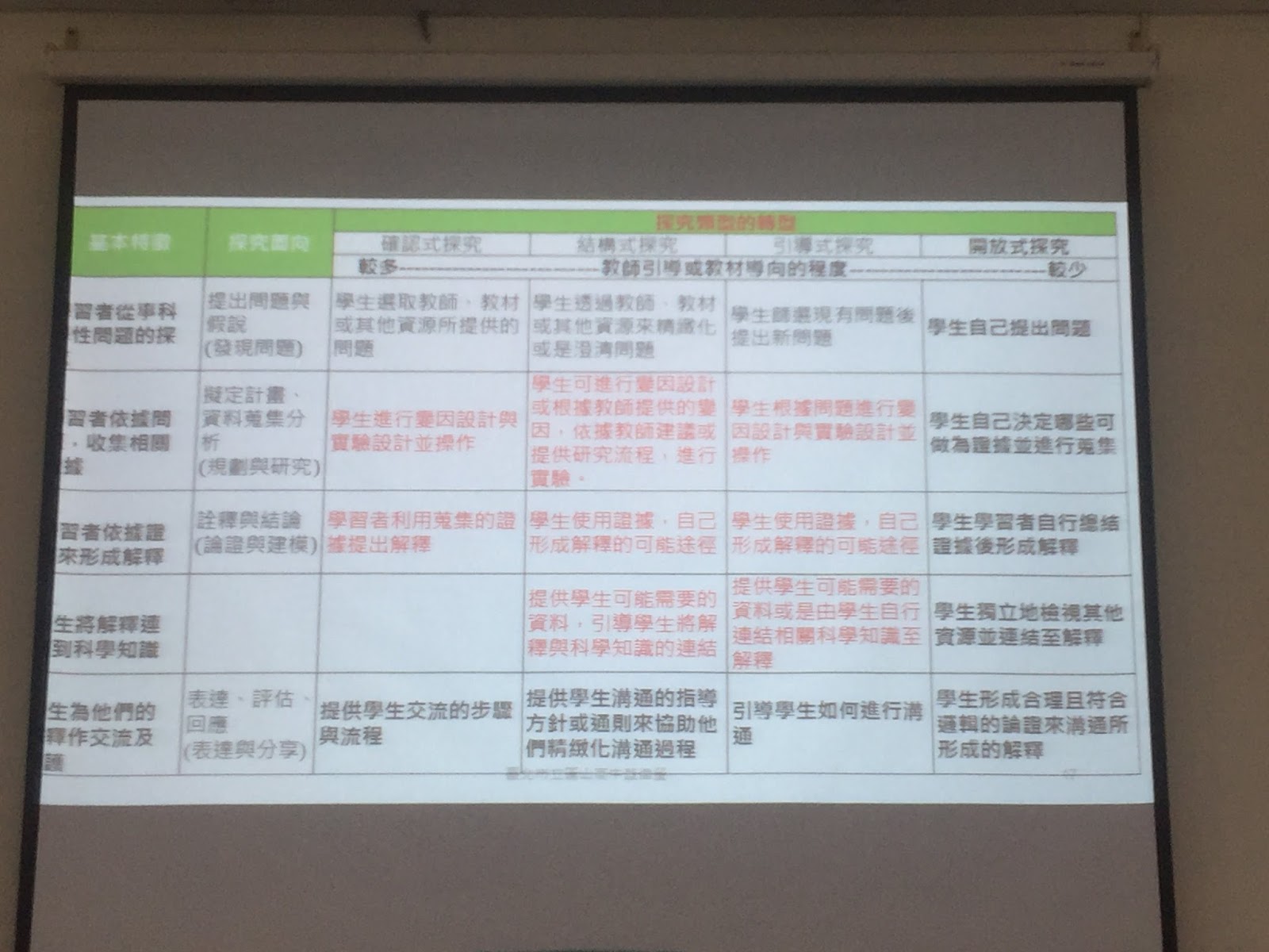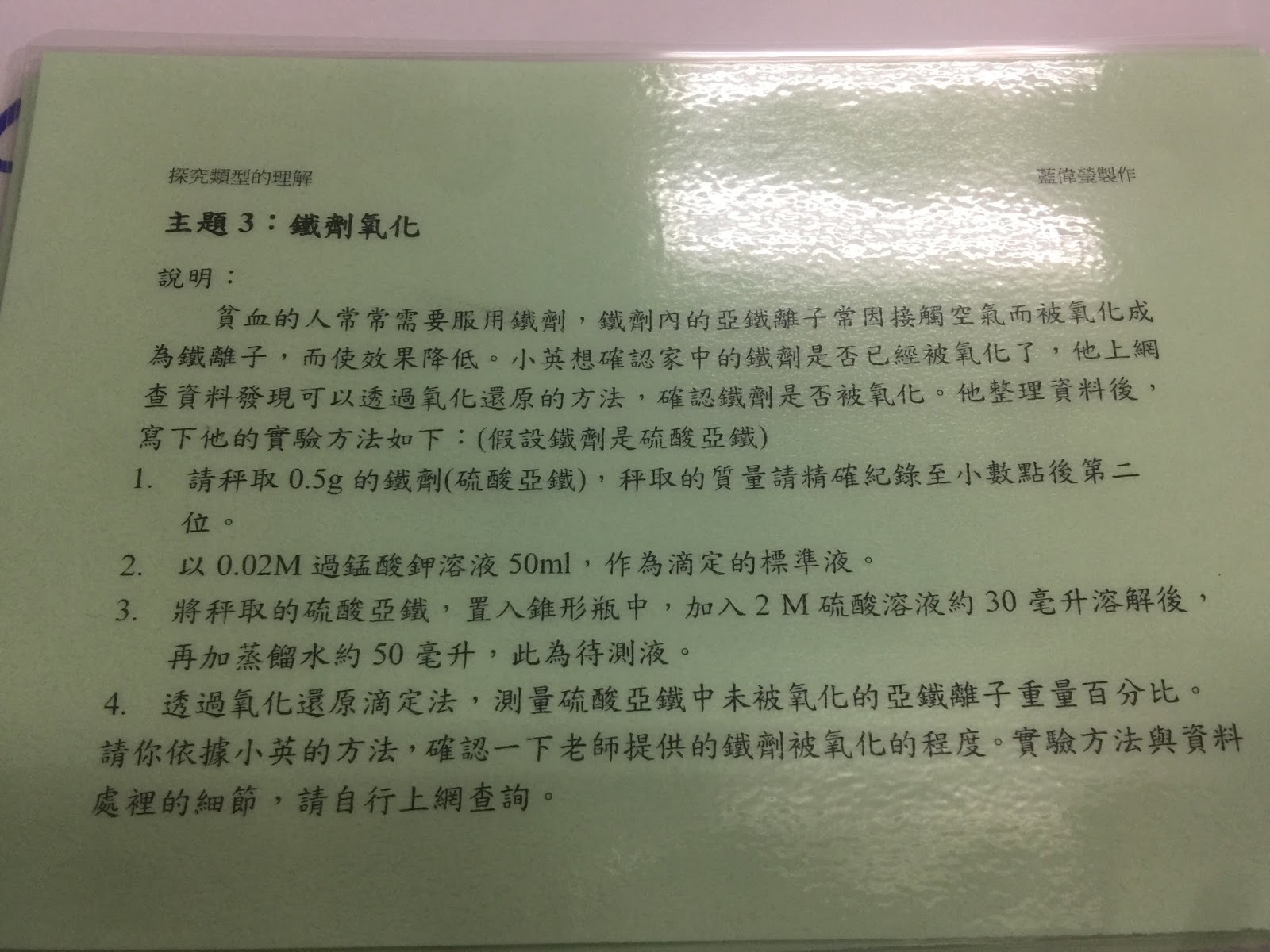 (3)引導式:給問題,研究流程步驟、答案皆未知,由學生自行設計實驗步驟,找出答案