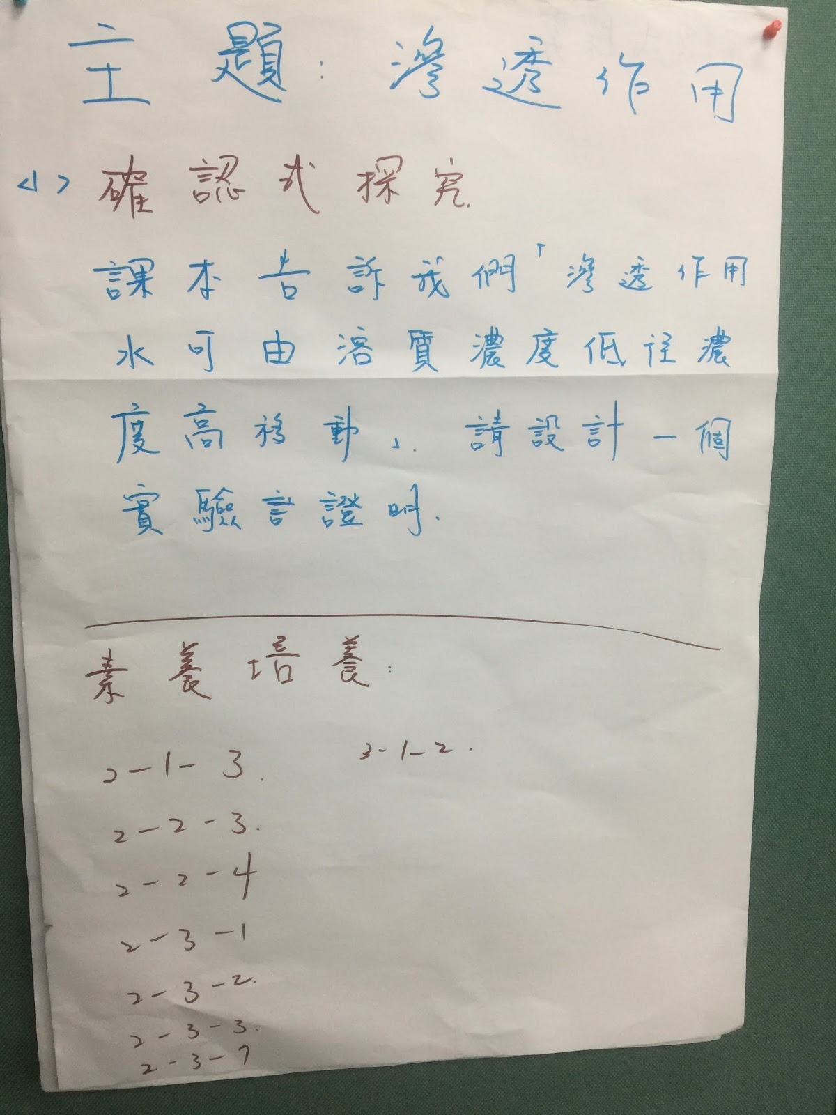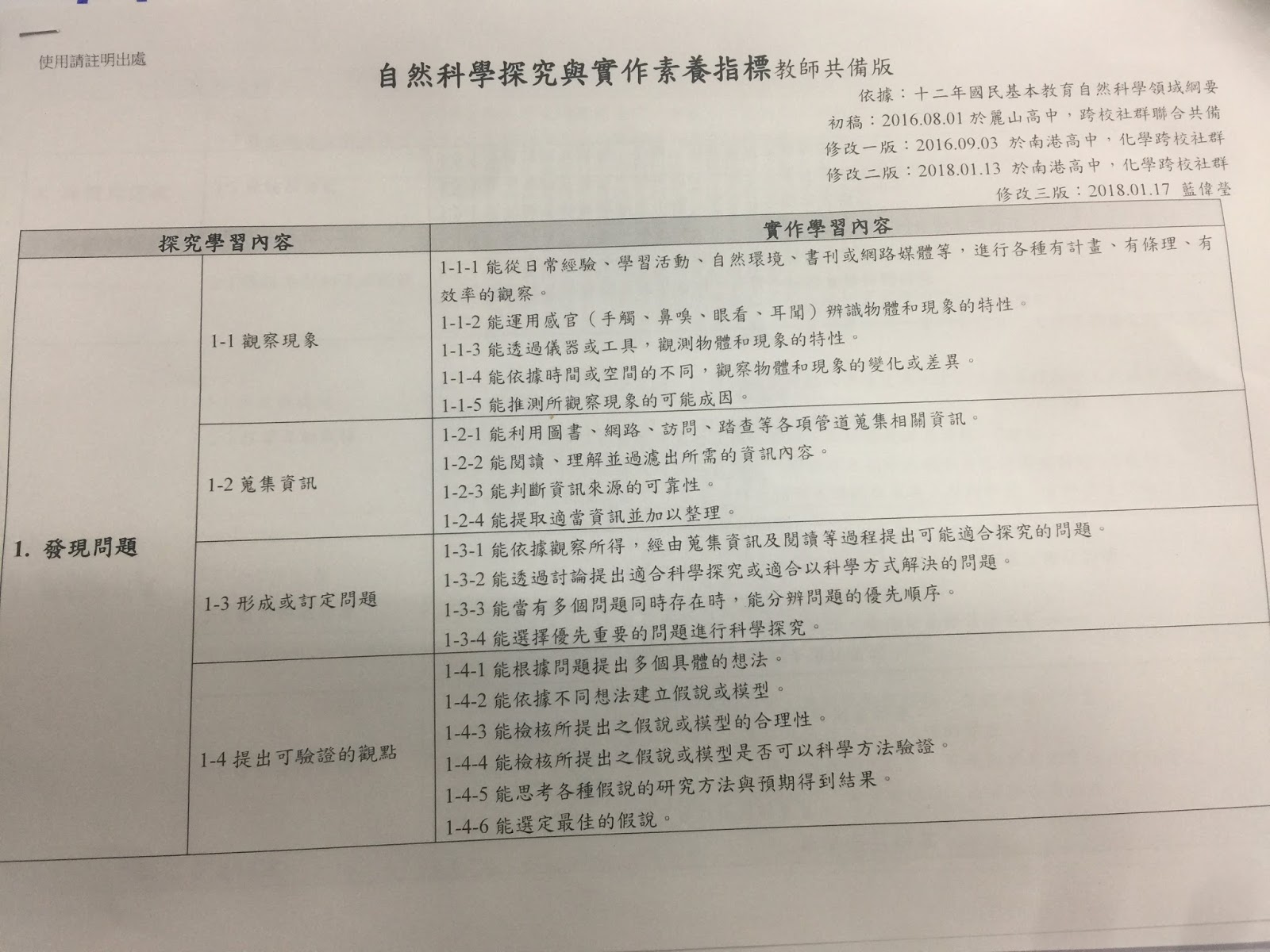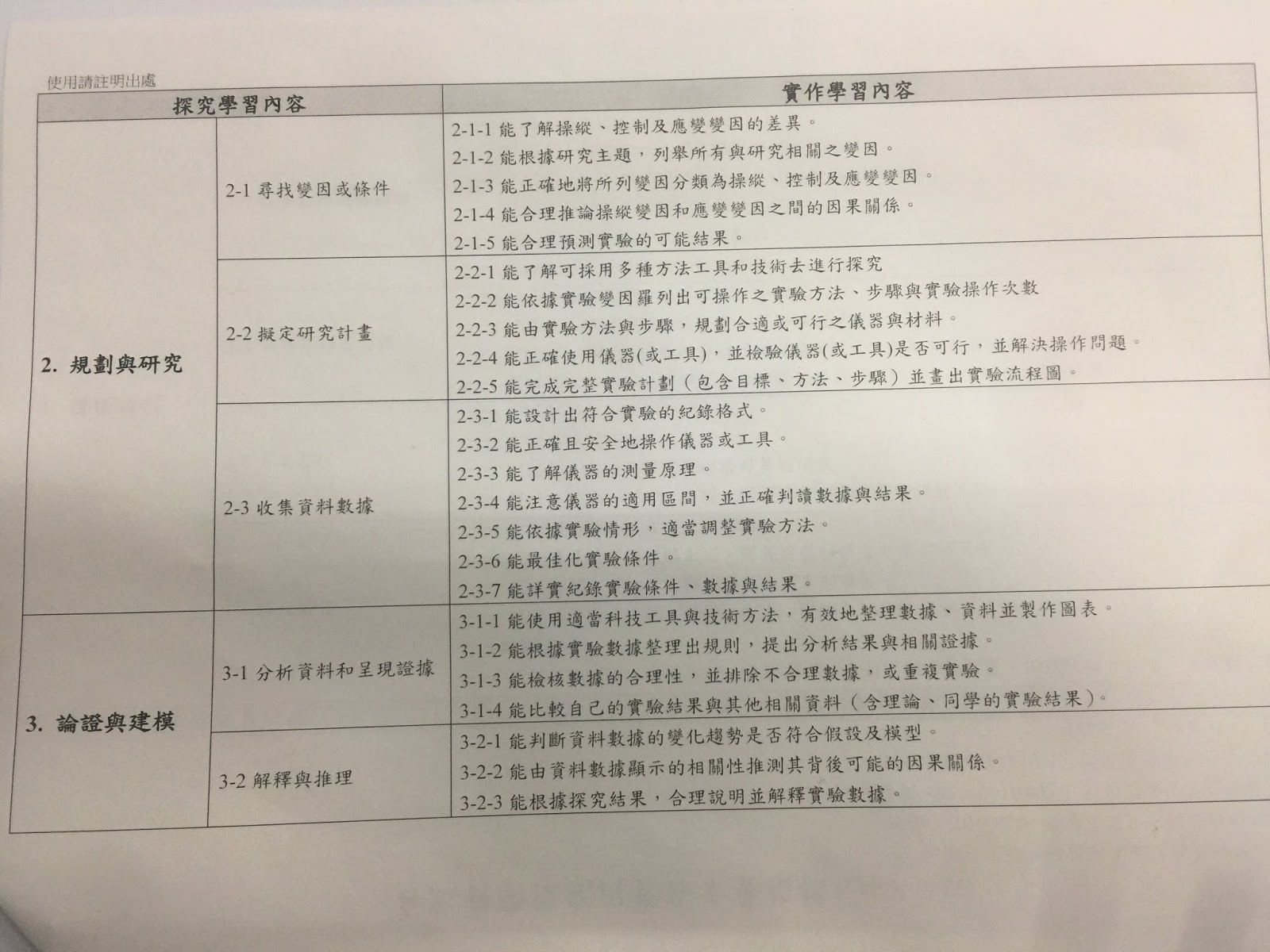 自然科學實作與探究素養指標,來確認學習目標