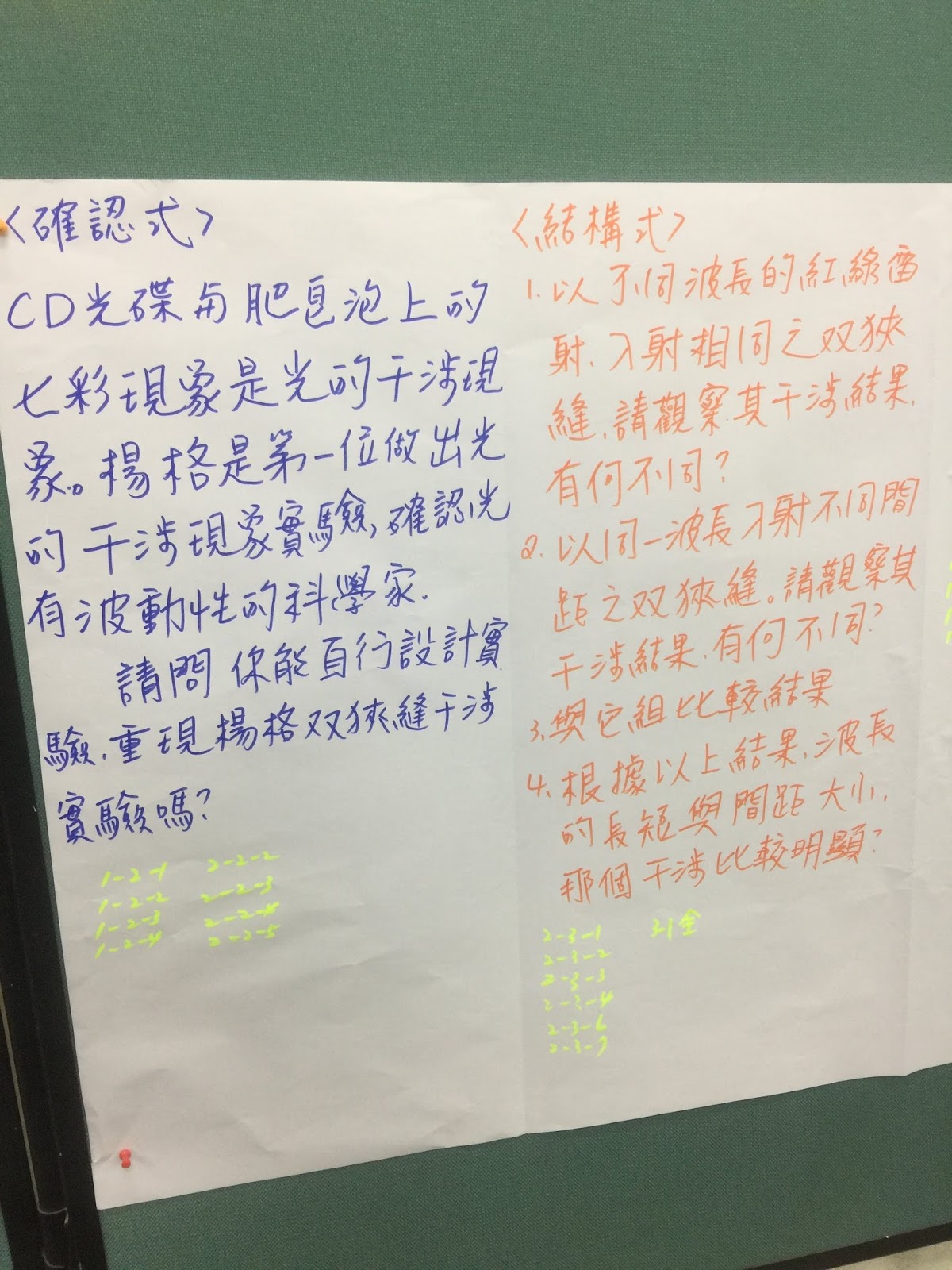 (1)確認式:已知結果,未知過程,請學生設計實驗過程,確認結果。